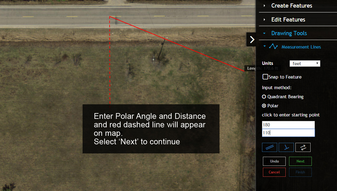 12. Once the line is extending south of the 50′ Measurement Line select ‘Next’.