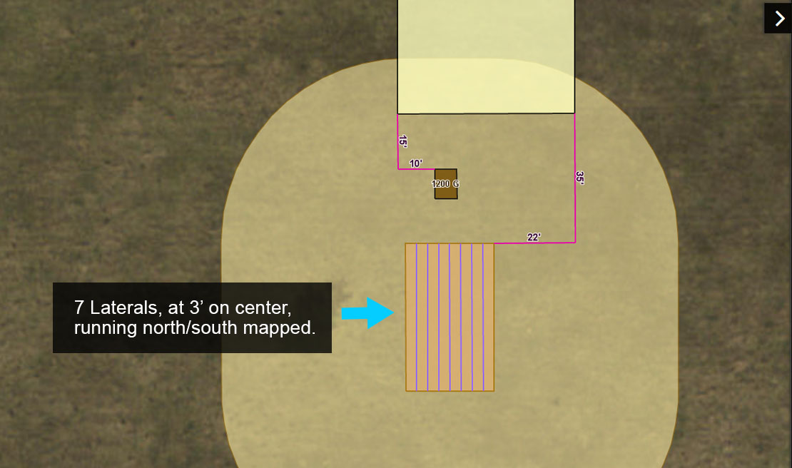 Note the the dimensions of the Drain Field are automatically added to the Form, including the Width, Length and Square Feet. If you do not map the Drain Field, these values will need to be entered manually.